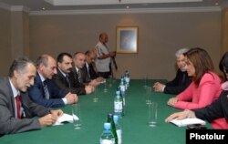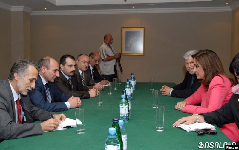 Armenia -- Greek Foreign Minister Dora Bakoyannis (R) meets the ethnic Armenian leadership of Nagorno-Karabakh in Yerevan on July 2, 2009.