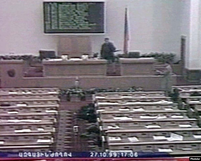 On October 27, 1999, five gunmen led by Nairi Hunanian, an obscure former journalist, burst into the National Assembly chamber and sprayed it with bullets with the stated aim of changing what they denounced as a corrupt and undemocratic government.