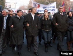 Armenia -- Opposition leaders lead a demonstration in Yerevan, 10Dec2010.