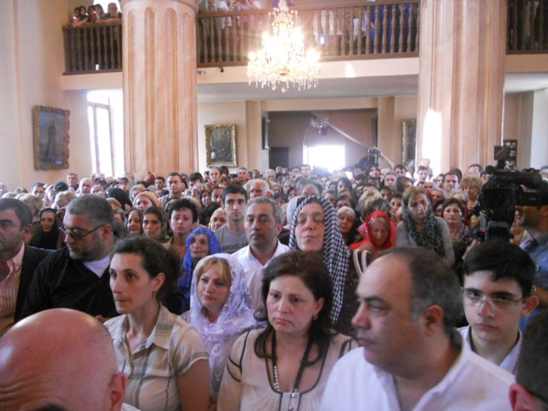 Georgia - Hundreds of worshippers attend the re-consecration of Tbilisis St. Echmiazdin Armenian church by Catholicos Garegin II, 11Jun2011.