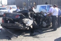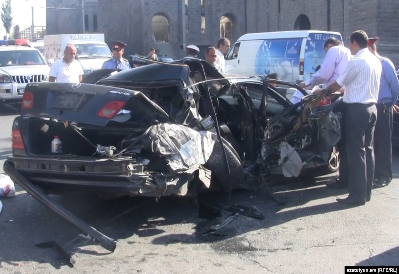 Armenia - A crashed car that was chased by police officers investigating a series of robberies in Yerevan, 23Sep2011.