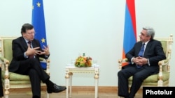 Հայաստանի նախագահ Սերժ Սարգսյանը եւ Եվրոպական հանձնաժողովի նախագահ Ժոզե Մանուել Բարոզոն համատեղ մամուլի ասուլիսում