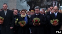 Շաբաթ օրվա այս միջոցառումն առաջինն էր, որն անցկացվեց պետության հովանավորությամբ։ Նախորդ նախագահ Վիկտոր Յանուկովիչը, որի իշխանությունը տապալվեց այս տարվա սկզբի ապստամբության արդյունքում, փորձել է մեղմել այս հիշողությունները՝ պաշտպանելով Կրեմլի պարտադրած ուղին։