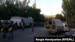 Ոստիկանությունը ջրցան մեքենա, «Տիգր» տեսակի մեքենա և փշալարեր է մոտեցրել Բաղրամյանի կենտրոնական հատված: