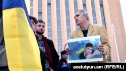 Այսօր Երևանում Ռուսաստանի դեսպանատան մոտ մի խումբ քաղաքացիներ բողոքի ակցիա էին կազմակերպել՝ պահանջելով ազատ արձակել ուկրաինացի օդաչու Նադեժդա Սավչենկոյին: