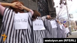 «Հայ կանանց ճակատ»-ը խորհրդանշական ակցիա անցկացրեց ոստիկանության շենքի մոտ