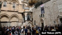 «Հիմա տաճարի դուռը փակ է՝ ի նշան բողոքի: Հոգևոր պետերը բողոքում են երկու որոշման դեմ: Առաջինը քաղաքապետարանի որոշման դեմ, որը հրահանգվել է Սուրբ երկրի քրիտոնյա համայնքների եկեղեցիներից ու վանքերից հարկ գանձել, ինչից դարեր շարունակ քրիստոնեական համայնքները ազատված են եղել», - «Ազատության» հետ զրույցում ասաց Երուսաղեմի Ժառանգավորաց վարժարանի ու ընծայարանի տեսուչ հայր Կորյուն վարդապետ Բաղդասարյանը: