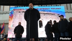 Չենք նահանջում, գնալու ենք մինչև վերջ միասին, համառ, հետևողական, հետևաբար մեկ անգամ ևս բոլորը ձեռքերը վեր`ամուր, վճռական, և հիմա դու, Նիկո՛լ, տես` քեզ հեռացնելու պահանջ կա: Առանց Նիկոլ Հա-յաս-տա՜ն»: