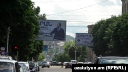 Վանաձորի կենտրոնական փողոցի ողջ երկայնքով Արզաքանցյանի լուսանկարով տասնյակ ցուցանակներ կան։ Դրանք տեղադրվել են դեռ մեկ ամիս առաջ հանրապետության գրեթե բոլոր քաղաքներում, այդ թվում՝ Վանաձորում։ Թեկնածուի մեծադիր լուսանկարի և անվան կողքին կուսակցության նախընտրական կարգախոսն է, նաև դժվար տեսանելի գրառում կա, որից երևում է, թե խոսքը բարեգործական հիմնադրամի մասին է։