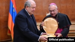 Պարգևն Արմեն Սարգսյանին այսօր հանձնել է Սուրբ Աթոռի պետքարտուղարի ընդհանուր հարցերով փոխանորդ արքեպիսկոպոս Էդգար Պենյա Պառայը։ Նա Հայաստանում է՝ Երևանում Սուրբ Աթոռի Առաքելական նվիրակության բացման առիթով:
