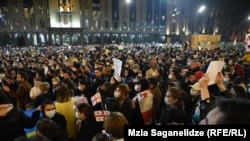 Թբիլիսիում բազամահազարանոց ցույցն ուղեկցվում է վարչապետի հրաժարականի կոչերով, Ուկրաինային աջակցող կարգախոսներով։
