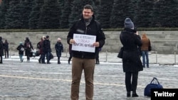 Մոսկվայի Կարմիր հրապարակում բերման է ենթարկվել Ալեքսանդր Սավինը, ով դուրս է եկել «Բոլորին չես բանտարկում. ազատություն քաղբանտարկյալներին» պաստառով։