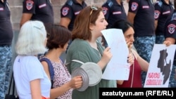 Քաղաքացիների մեկ այլ խումբ էլ գործադիրի նիստին զուգահեռ կառավարության շենքի դիմաց էր հավաքվել։
