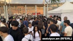 Հայաստան-Պորտուգալիա ֆուտբոլային հանդիպումը դիտելու եկած մարդիկ տոմսերն ակտիվացնելիս խնդիրների են բախվում՝ Հանրապետական մարզադաշտի մուտքի մոտ: