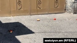 Նրանք "Вон из Армении" բացականչություններով ձվեր, կարտոֆիլ ու լոլիկ նետեցին դեսպանատան՝ Առինջում գտնվող շենքի պատերին: