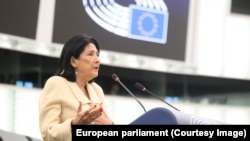 Ֆրանսիաբնակ Սալոմե Զուրաբիշվիլին, որը տարիներ առաջ Վրաստանի քաղաքական դաշտ վերադարձավ և նախագահական ընտրություններում հաղթանակ տարավ Բիձինա Իվանիշվիլիի առաջնորդած կուսակցության աջակցությամբ, Եվրախորհրդարանում այսօր պնդեց՝ Վրաստանում ամեն ինչ վերահսկվում է մեկ կուսակցության և մեկ մարդու կողմից, ու այդ մեկ մարդը երկիրը տանում է Ռուսաստան։