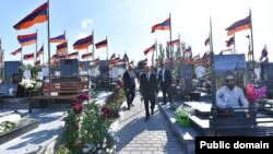 Նախօրեին՝ 44-օրյա պատերազմի մեկնարկի չորրորդ տարելիցին, վարչապետը Հայաստանում չէր, նա միայն այսօր է «Եռաբլուր» այցելել ու ծաղիկներ խոնարհել զոհերի հիշատակին։ Տարածված պաշտոնական տեսանյութում Փաշինյանը ծնկաչոք խոնարհվում է զոհված հերոսների շիրիմների մոտ, իսկ նրա կինը՝ Աննա Հակոբյանը՝ արտասվում։